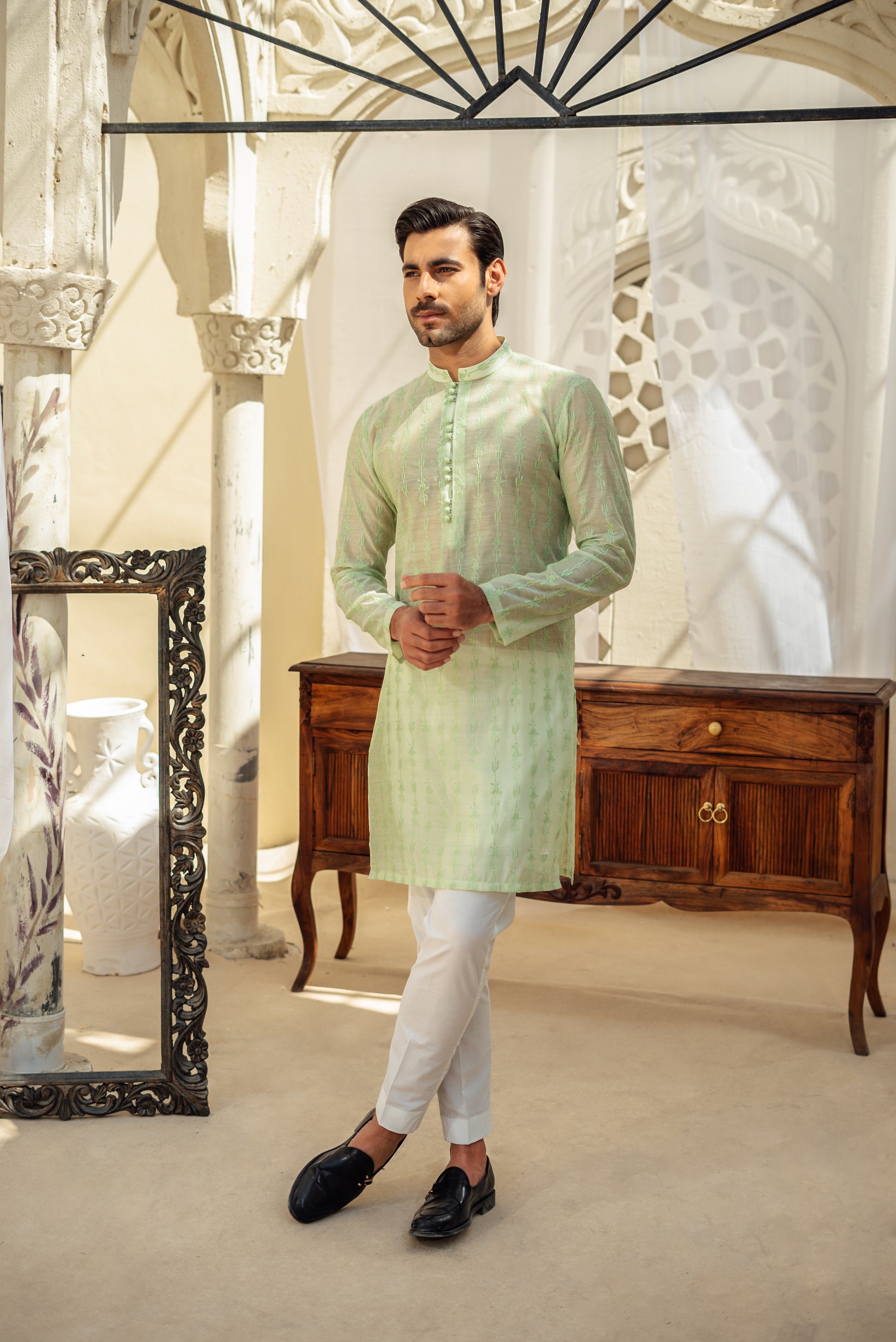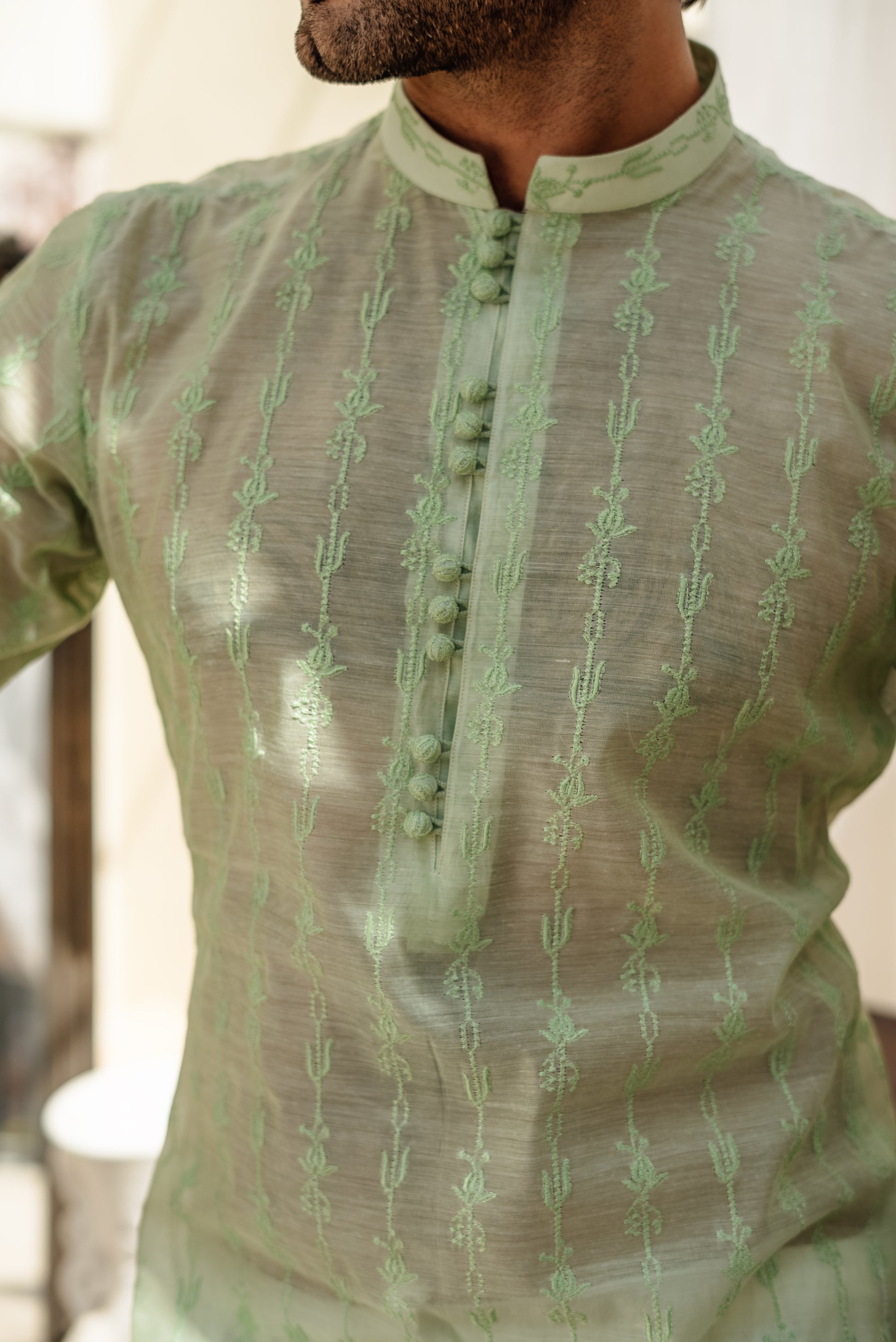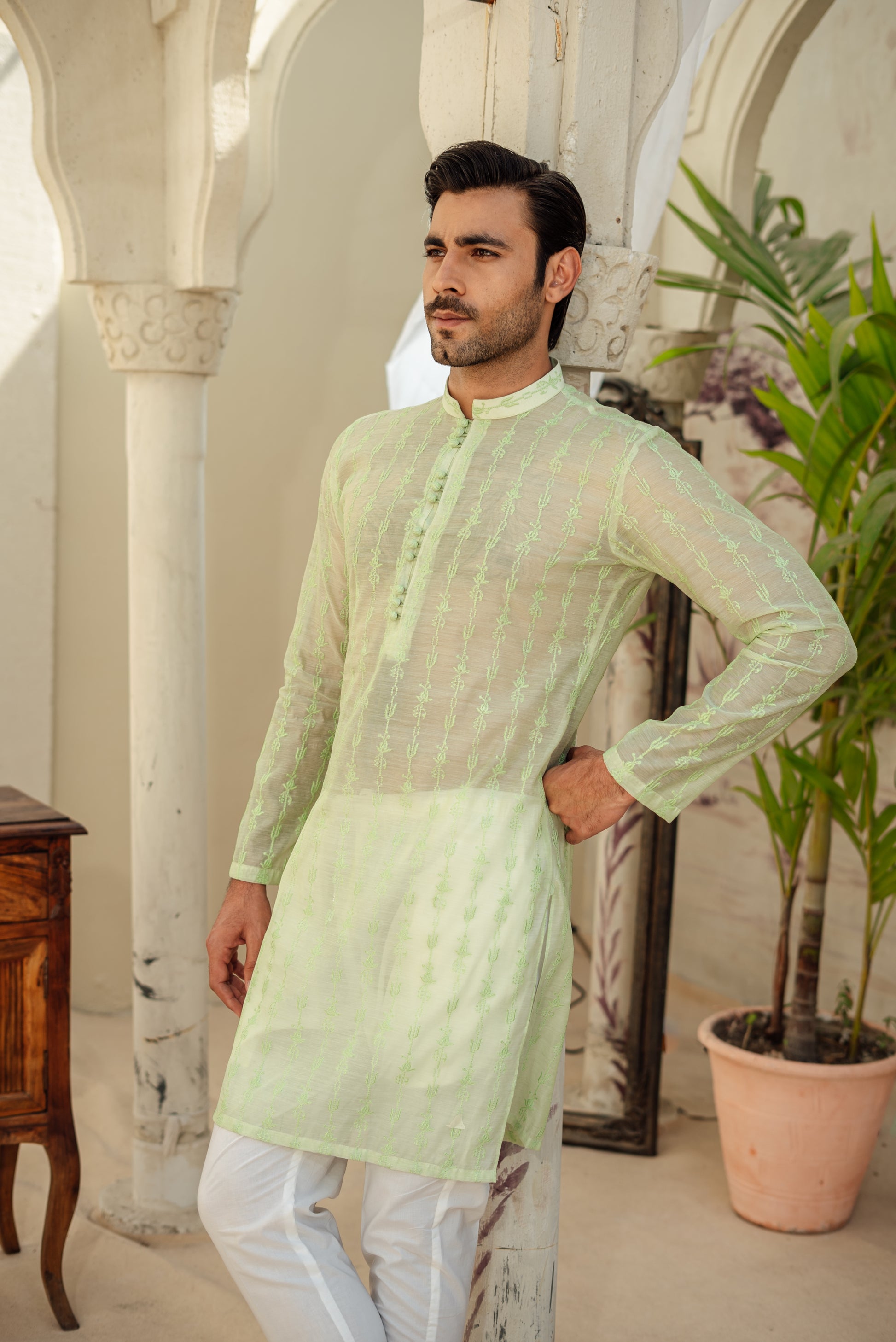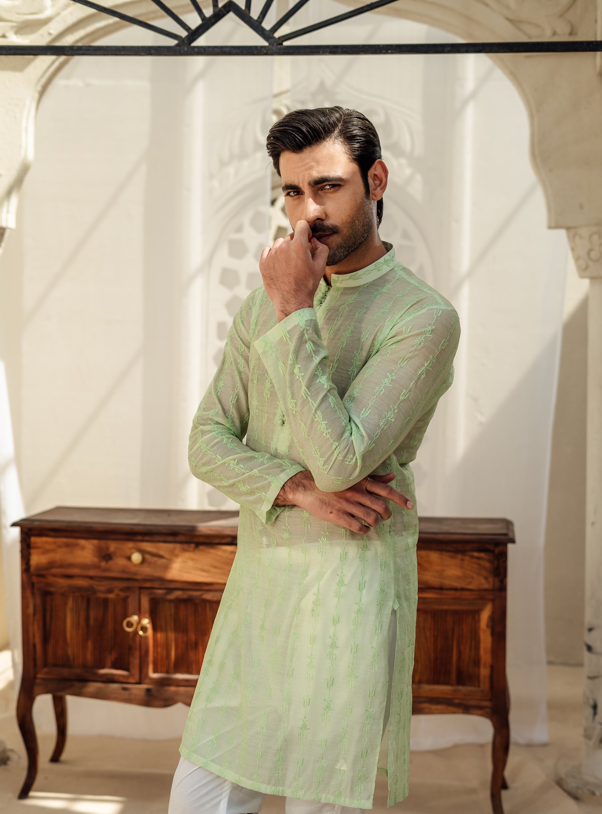 Embrace sophistication with our Mint Green Chikan Kari Kurta, where tradition meets contemporary charm.